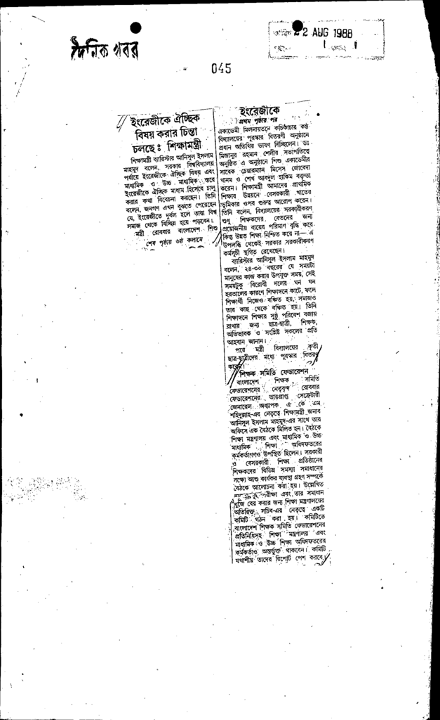 ইংরেজীকে ঐচ্ছিক বিয়য় করার চিন্তা চলছেঃ শিক্ষামন্ত্রী Published on Newspaper দৈনিক খবর Category Personal Opinion / Discussion / Commentary Download