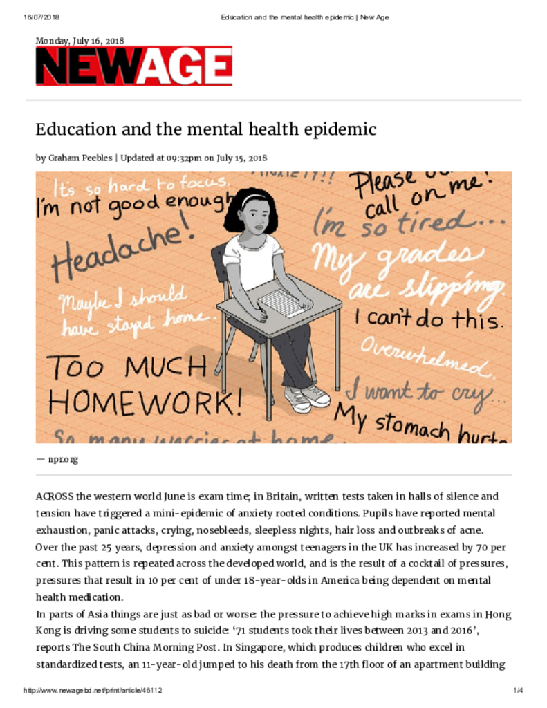 Education and the mental health epidemic _ New Age Published on Newspaper New Age Category Personal Opinion / Discussion / Commentary Download