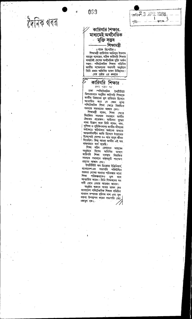 কারিগরি শিক্ষার মাধ্যমেই অর্থতিক মুক্তি সম্ভবঃ শিক্ষামন্ত্রী Published on Newspaper দৈনিক খবর Category Personal Opinion / Discussion / Commentary Download