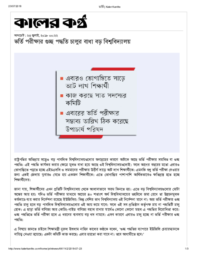 ভর্তি পরীক্ষার গুচ্ছ পদ্ধতি চালুর বাধা বড় বিশ্ববিদ্যালয় Published on Newspaper দৈনিক কালের কন্ঠ Category Personal Opinion / Discussion / Commentary Personal Speech / Discussion / Comentary Higher Education Download