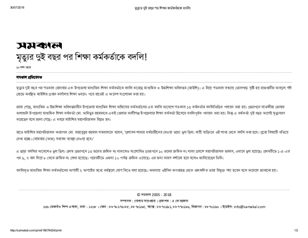 মৃত্যুর দুই বছর পর শিক্ষা কর্মকর্তাকে বদলি! Published on Newspaper দৈনিক সমকাল Category Educational Ministry / Departments directorate Other Education Ministry / Division / Directorate Download