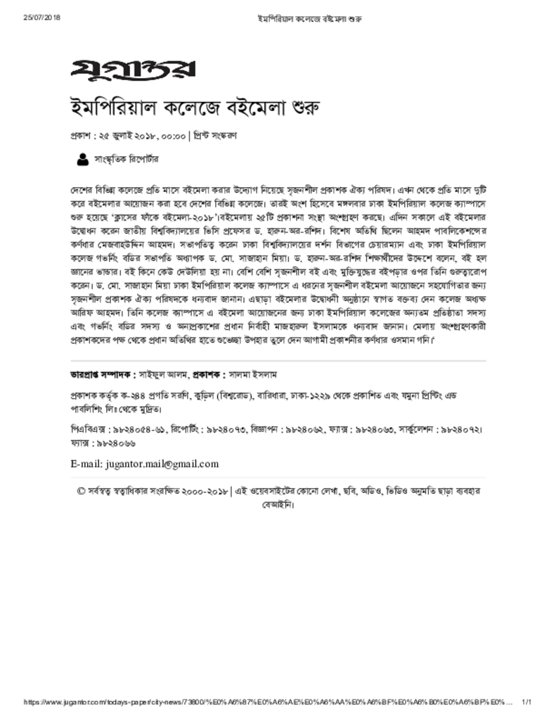 ইমপিরিয়াল কলেজে বইমেলা শুরু