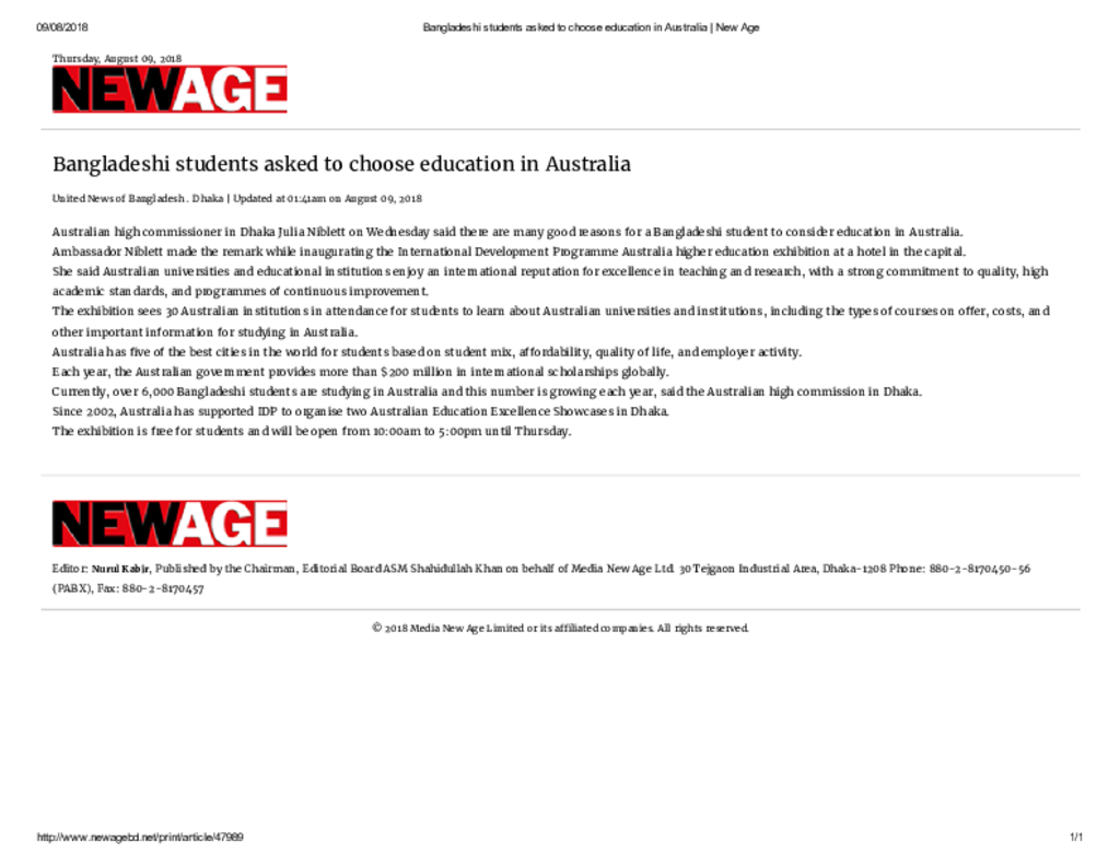 Bangladeshi students asked to choose education in Australia _ New Age Published on Newspaper New Age Category Others Download