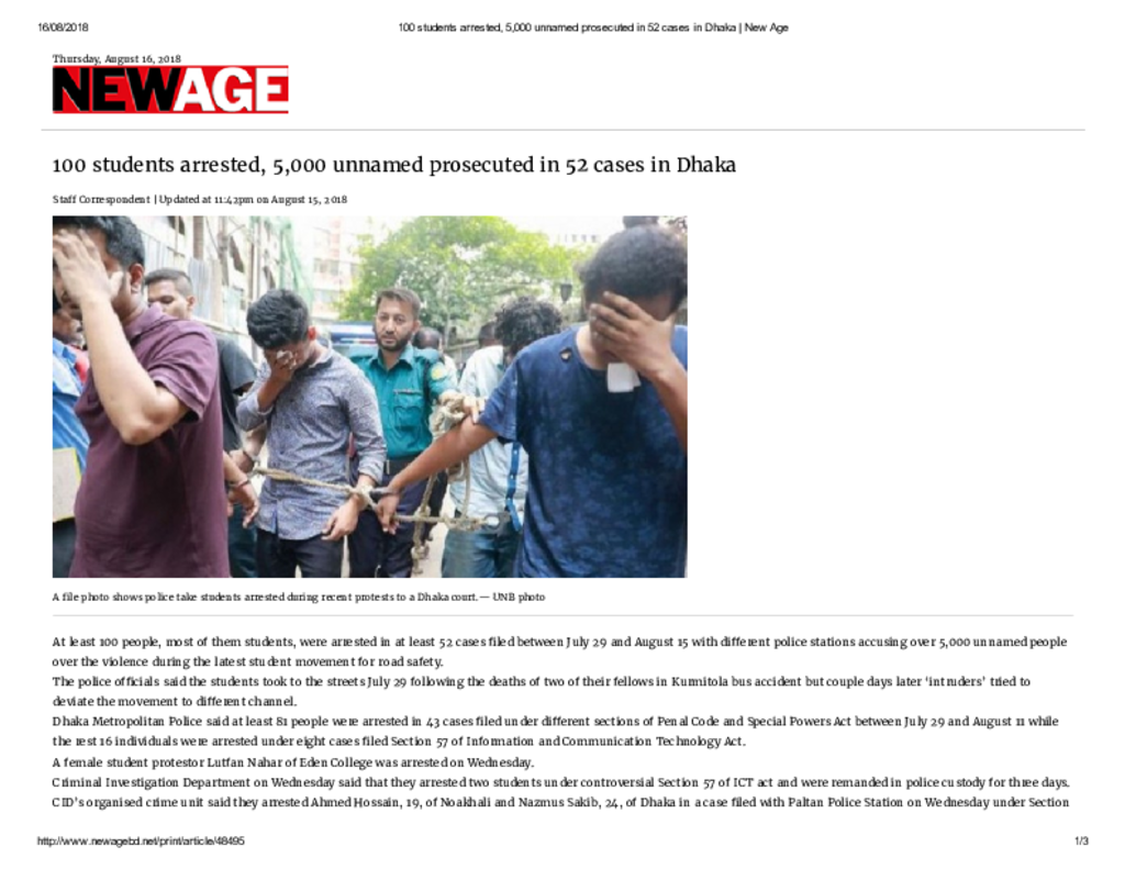 100 students arrested, 5,000 unnamed prosecuted in 52 cases in Dhaka _ New Age Published on Newspaper New Age Category Others Download