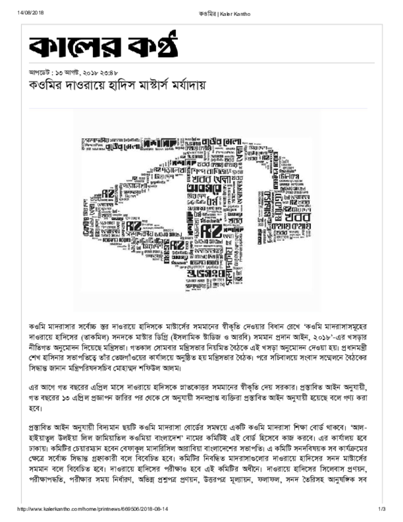 কওমির দাওরায়ে হাদিস মাস্টার্স মর্যাদায় Published on Newspaper দৈনিক কালের কন্ঠ Category Madrasah Education Madrasah Education Qawmi Download