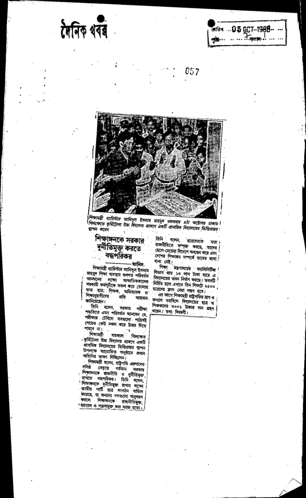 শিক্ষাঙগেনকে সরকার দুর্নীতিমুক্ত করতে বদ্ধপরিকর Published on Newspaper দৈনিক খবর Category Personal Opinion / Discussion / Commentary Download