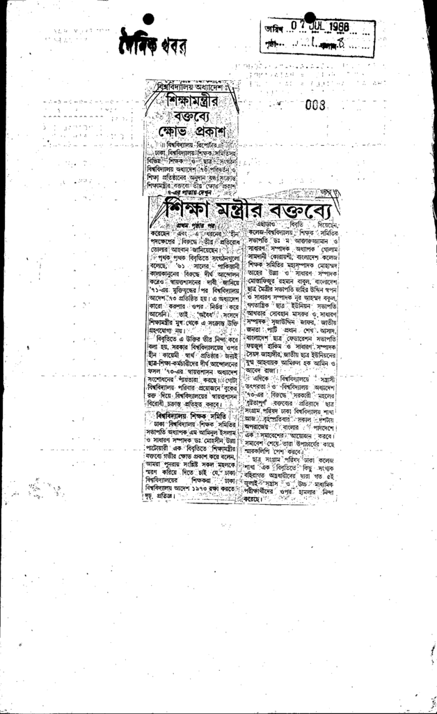 শিক্ষা মন্ত্রীর বক্তব্যে