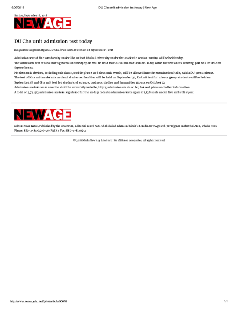 DU Cha unit admission test today _ New Age Published on Newspaper New Age Category Admission / Seat Problem Admission/Seat Problem Download