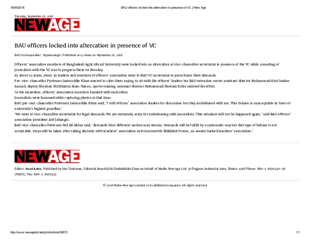 BAU officers locked into altercation in presence of VC _ New Age Published on Newspaper New Age Category General Education General Education Higher Education Public Download