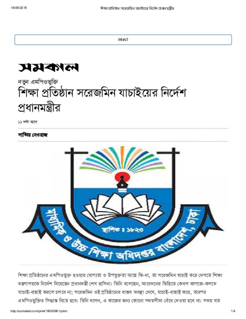 শিক্ষা প্রতিষ্ঠান সরেজমিন যাচাইয়ের নির্দেশ প্রধানমন্ত্রীর