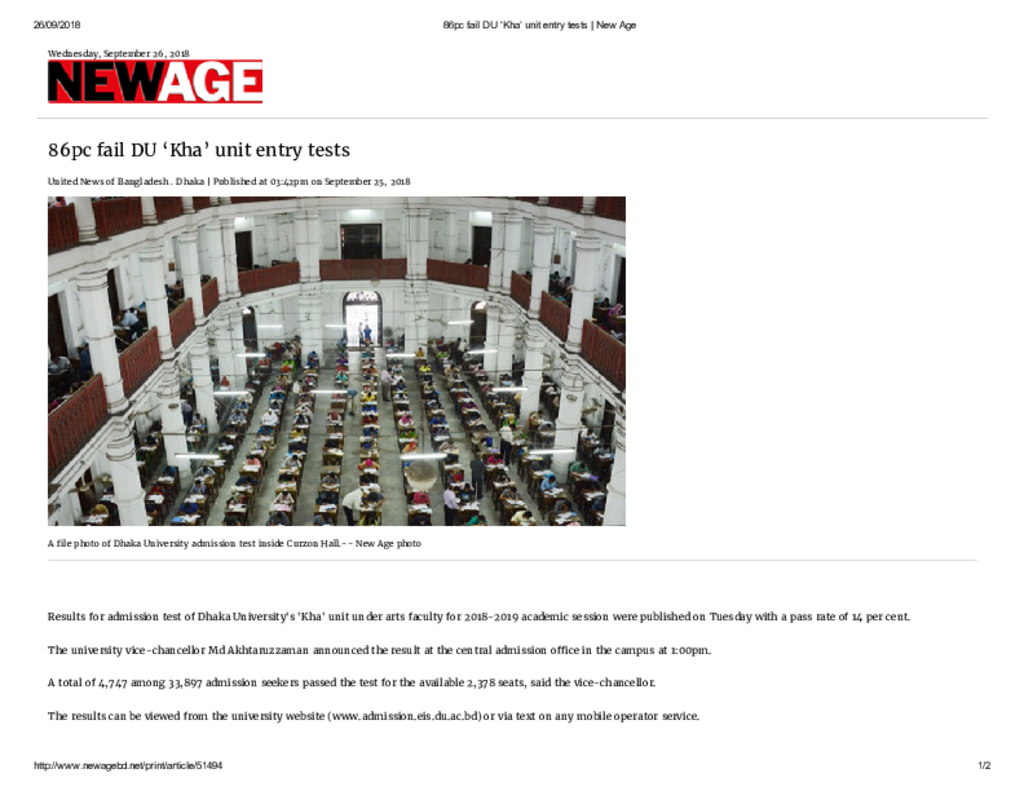 86pc fail DU ‘Kha’ unit entry tests _ New Age Published on Newspaper New Age Category Admission / Seat Problem Admission/Seat Problem Download