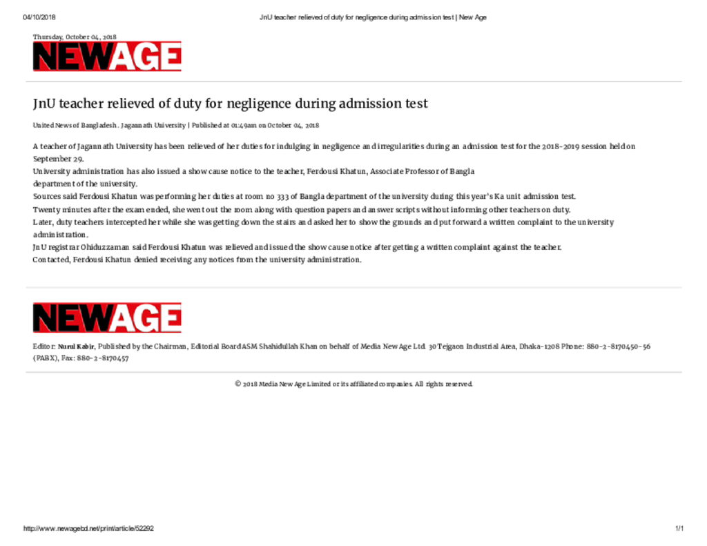 JnU teacher relieved of duty for negligence during admission test _ New Age