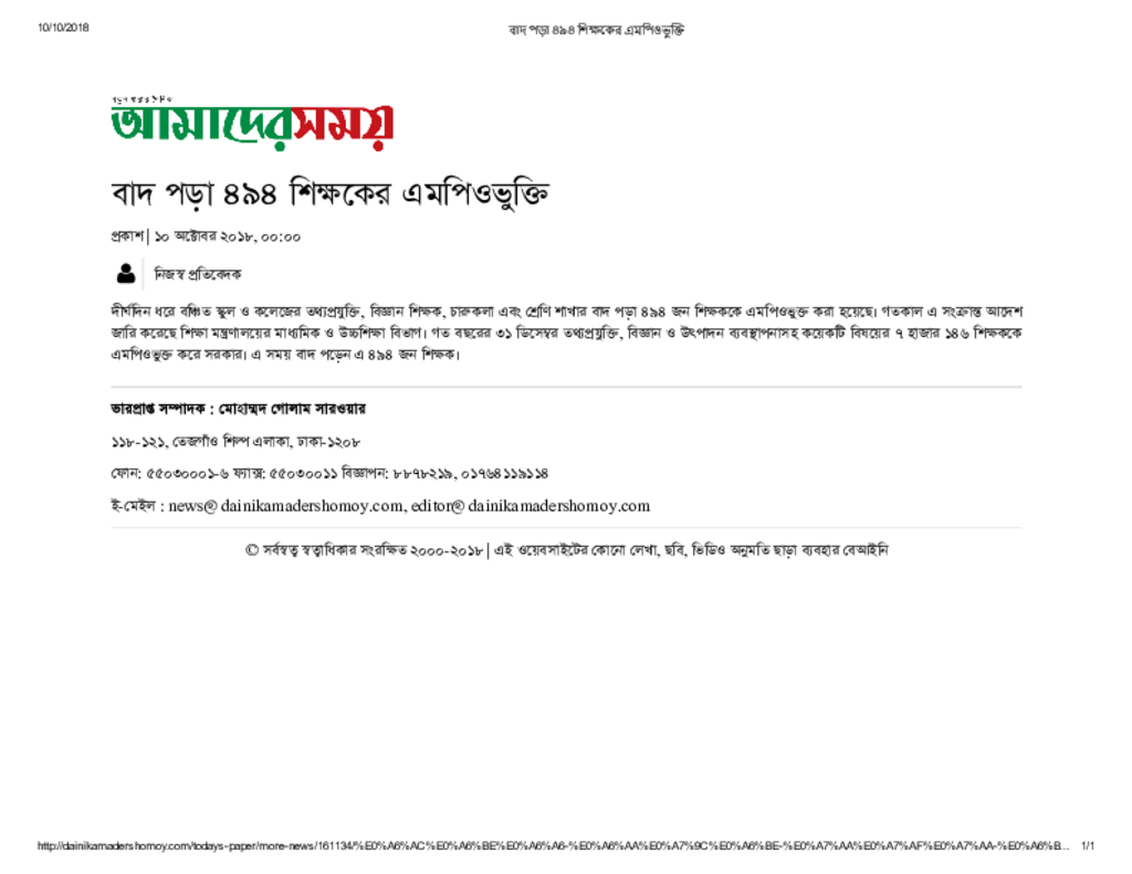 বাদ পড়া ৪৯৪ শিক্ষকের এমপিওভুক্তি Published on Newspaper দৈনিক আমাদের সময় Category Educational Ministry / Departments Division Secondary and Higher Education Education Ministry / Division / Directorate Download