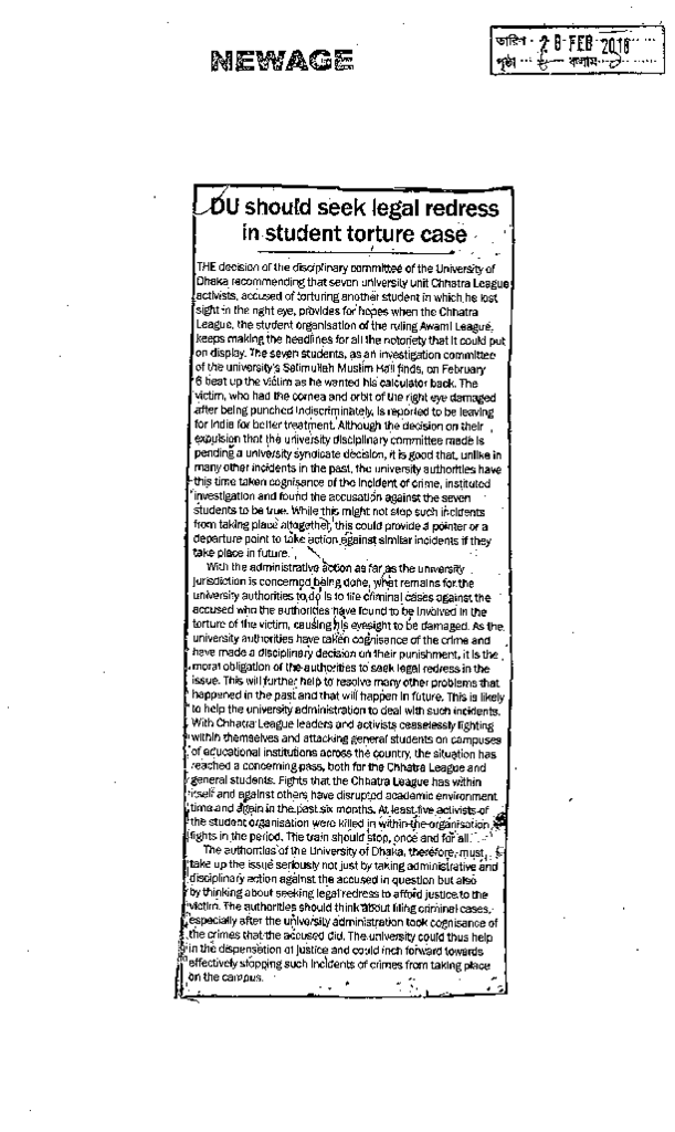 DU should seek legal redress In student torture case Published on Newspaper New Age Category General Education General Education Higher Education Public Download