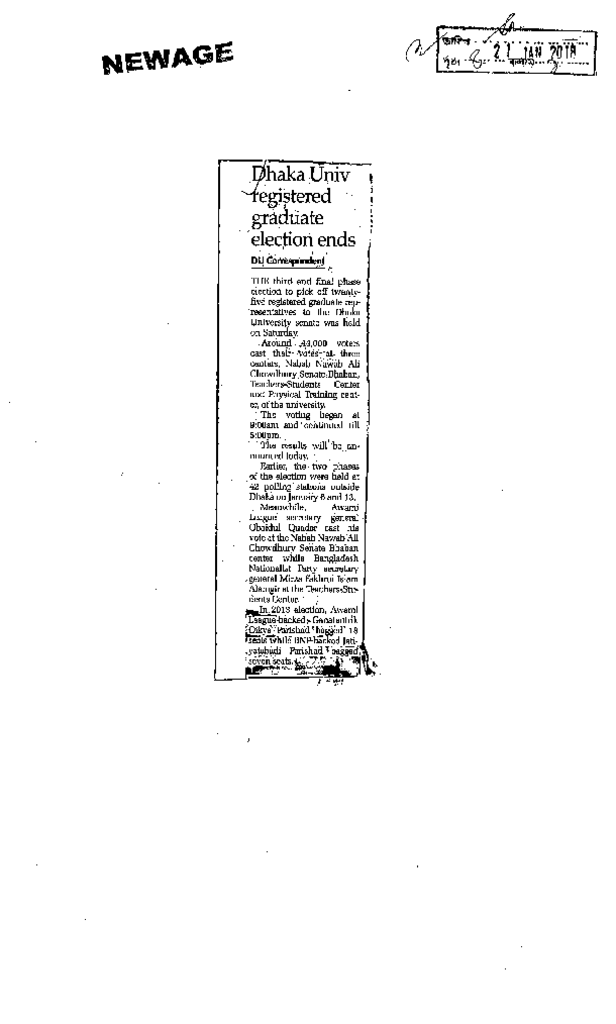 Dhaka Univ registered graduate election ends Published on Newspaper New Age Category General Education General Education Higher Education Public Download