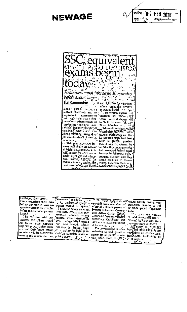 SSC equivalent exams begin today Published on Newspaper New Age Category Public Examination Public Examination SSC Download