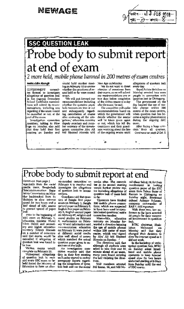 Probe body to submit report at end of exam Published on Newspaper New Age Category Public Examination Public Examination SSC Download