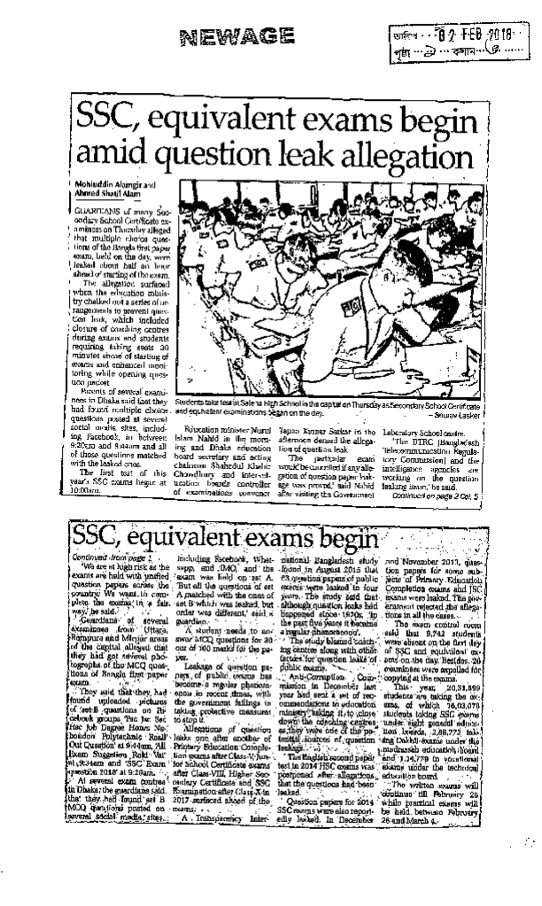 SSC, equivalent exams begin amid question leak allegation