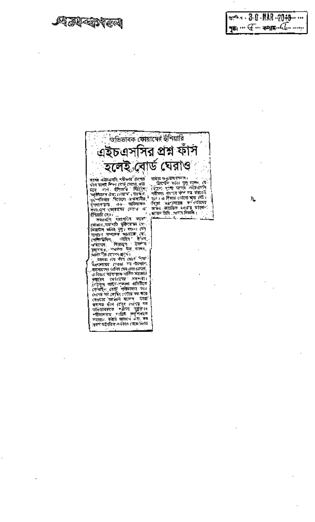 এইচএসসির প্রশ্ন ফাঁস হলেই বোর্ড ঘেরাও Published on Newspaper দৈনিক সমকাল Category Public Examination Public Examination HSC Download
