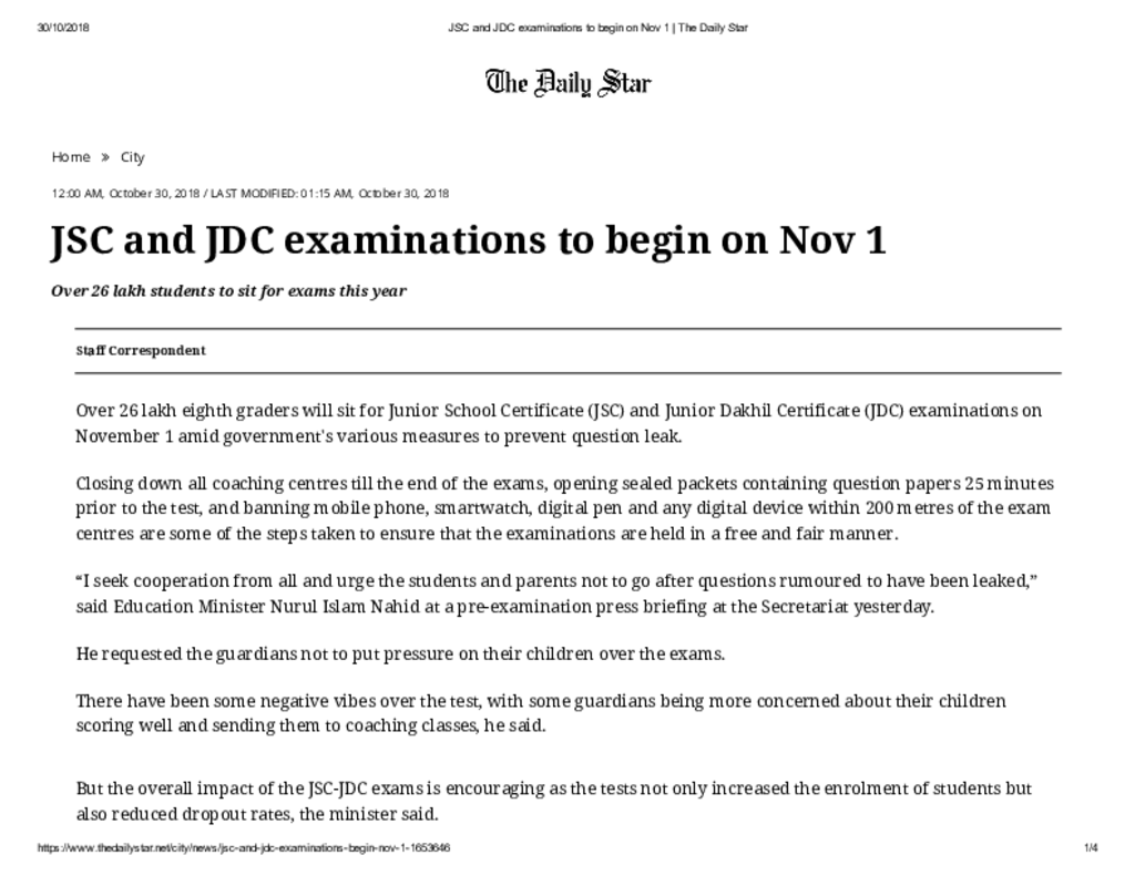 JSC and JDC examinations to begin on Nov 1 _ The Daily Star Published on Newspaper The Daily Star Category Public Examination Public Examination JSC Download