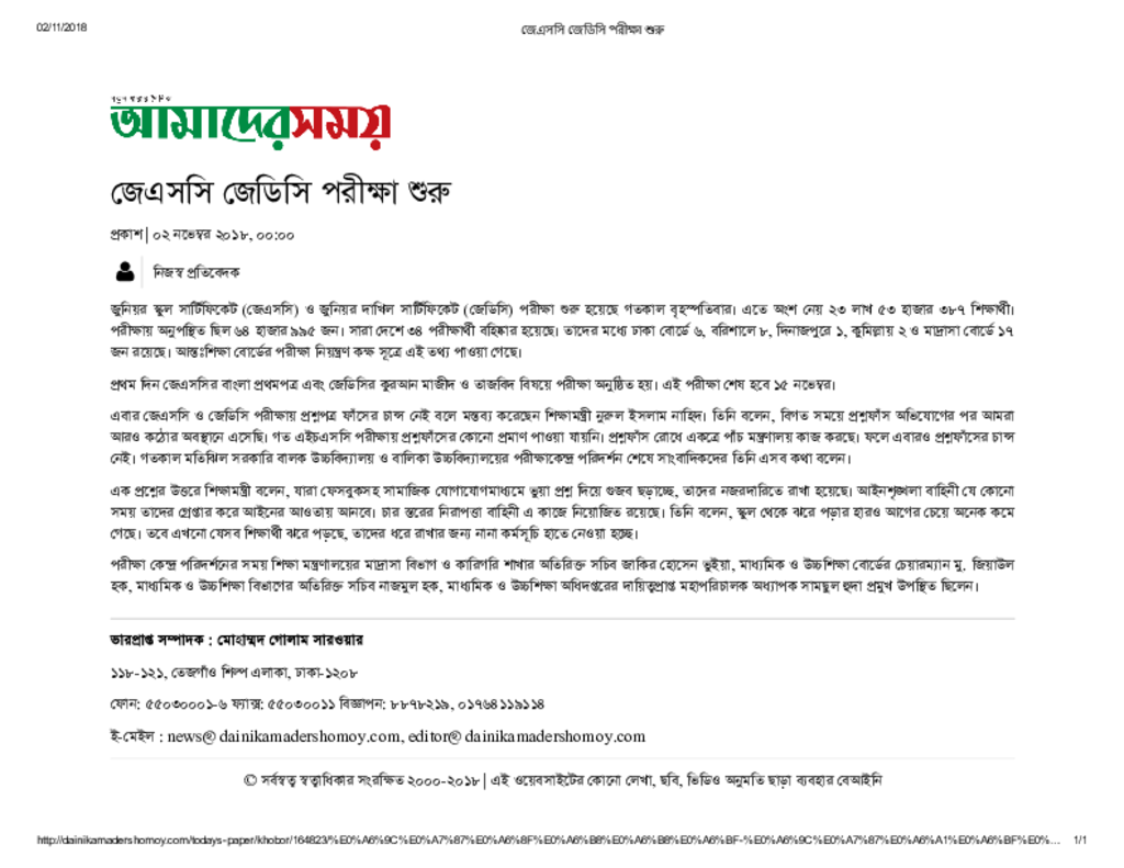 জেএসসি জেডিসি পরীক্ষা শুরু Published on Newspaper দৈনিক আমাদের সময় Category Public Examination Public Examination JSC Download