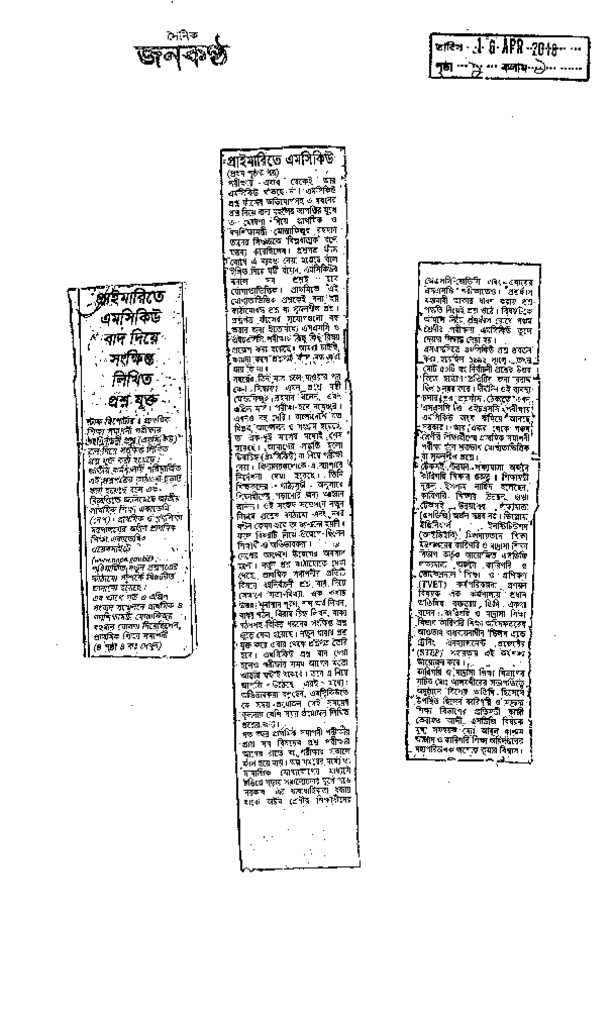 প্রাইমারিতে এমসিকিউ বাদ দিয়ে সংক্ষিপ্ত লিখিত প্রশ্ন যুক্ত Published on Newspaper দৈনিক জনকণ্ঠ Category Public Examination Public Examination Others Download