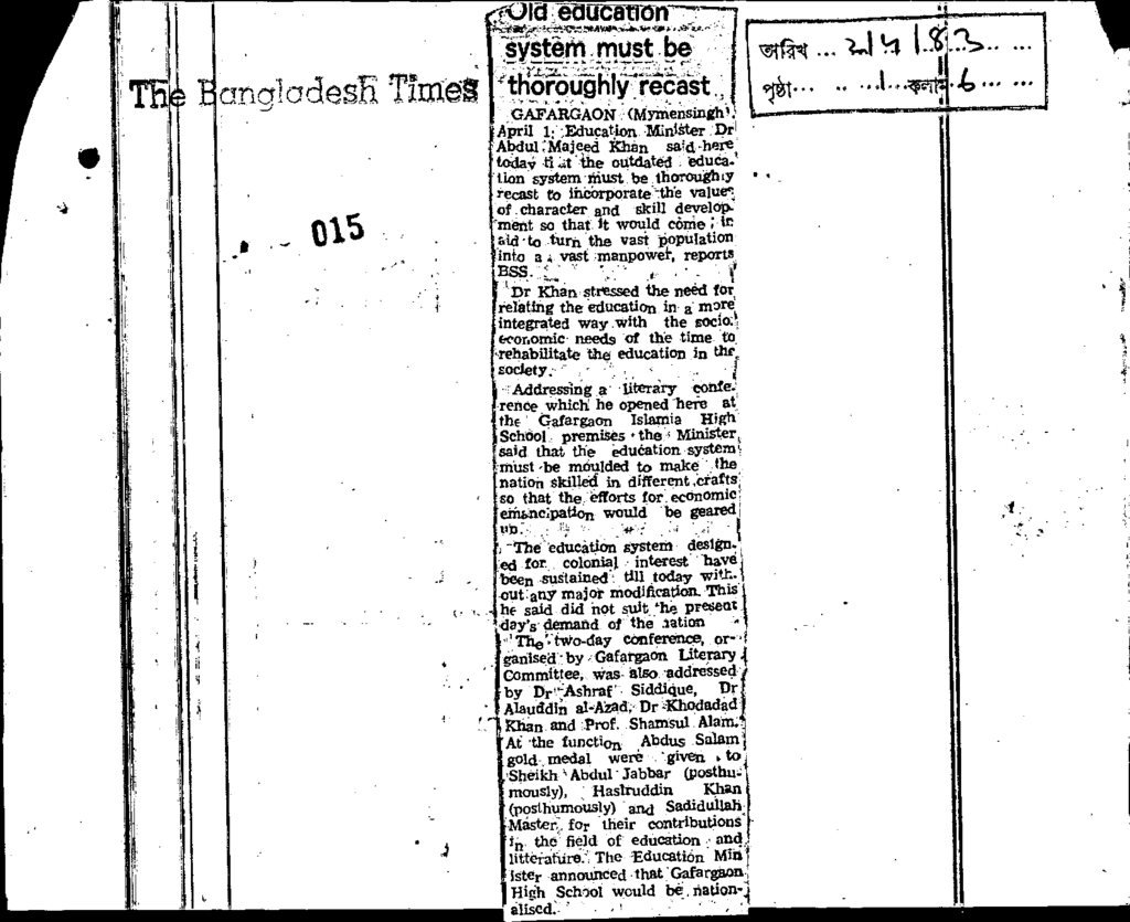 Old educatio system must be thoroughly recast Published on Newspaper The Bangladesh Times Category Admission / Seat Problem Download