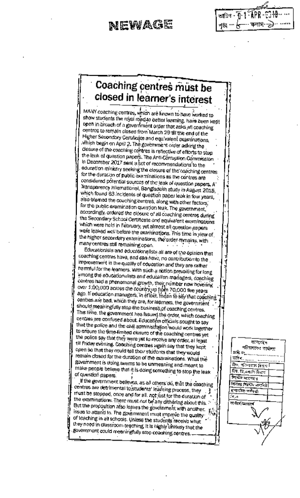 Coaching centres must be closed in learner's interest Published on Newspaper New Age Category Personal Opinion / Discussion / Commentary Download
