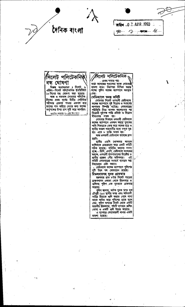 সিলেট পলিটেকনিক বন্ধ ঘোষণা Published on Newspaper দৈনিক বাংলা Category Technical and Vocational Education Download