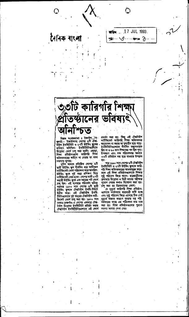 ৩৩টি কারি গরি শিক্ষা প্রতিষ্ঠানের ভবিষ্যৎ অনিশ্চিত Published on Newspaper দৈনিক ইনকিলাব Category Technical and Vocational Education Download