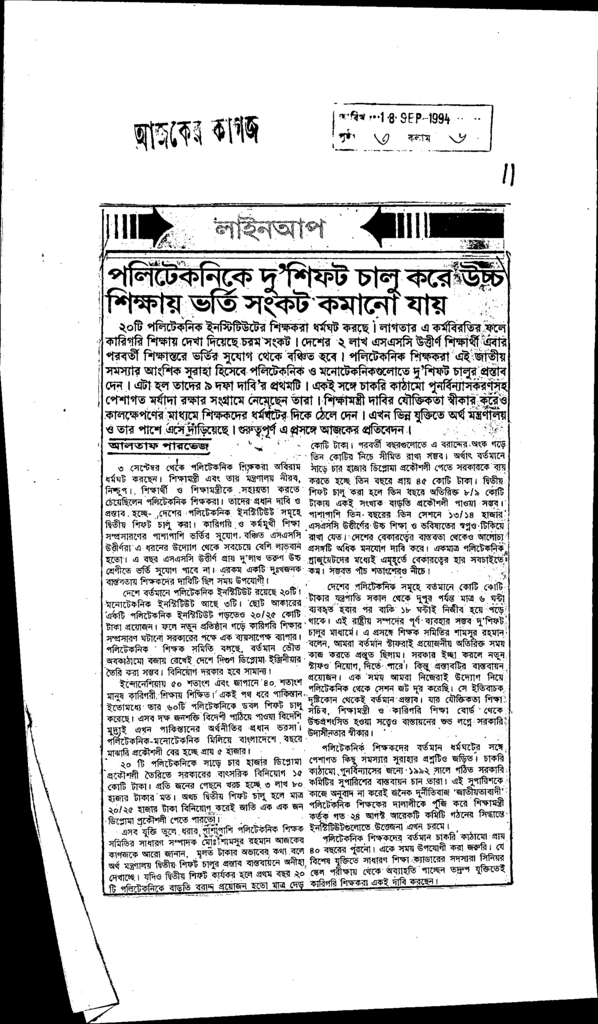লাইান আপ পলিটেকনিকে দুশিফট চালু করে উচ্চ শিক্ষায়া ভতি সংকট কমানো যায়্ Published on Newspaper দৈনিক আজকের কাগজ Category Technical and Vocational Education Download