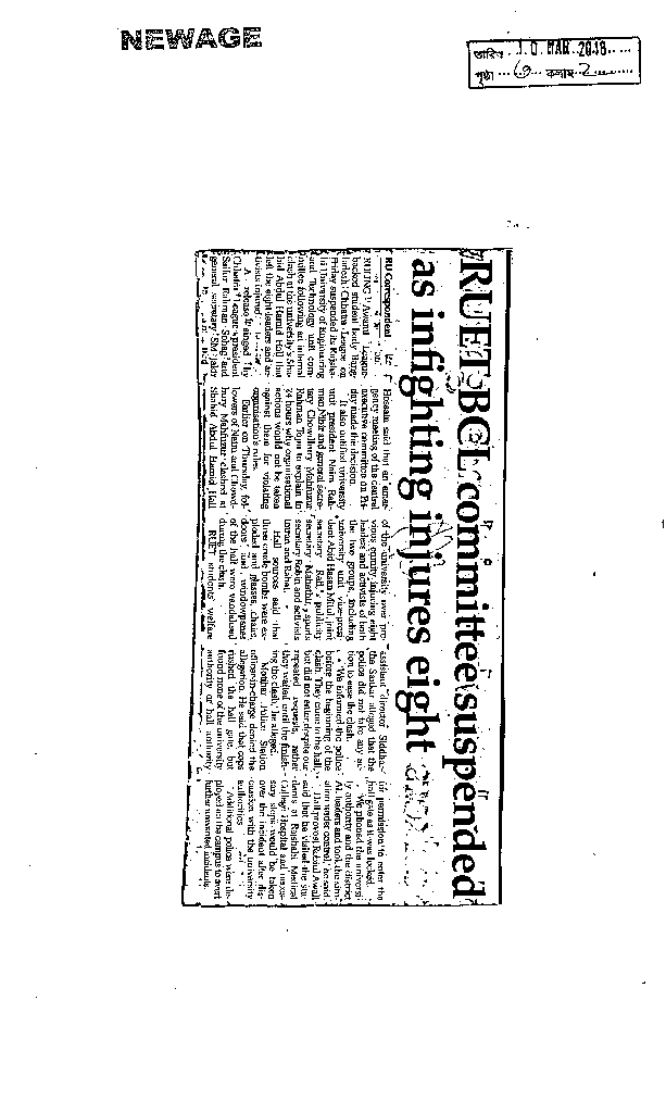 RUET BCL committee suspended as infighting injures eight Published on Newspaper New Age Category Student Politics Download