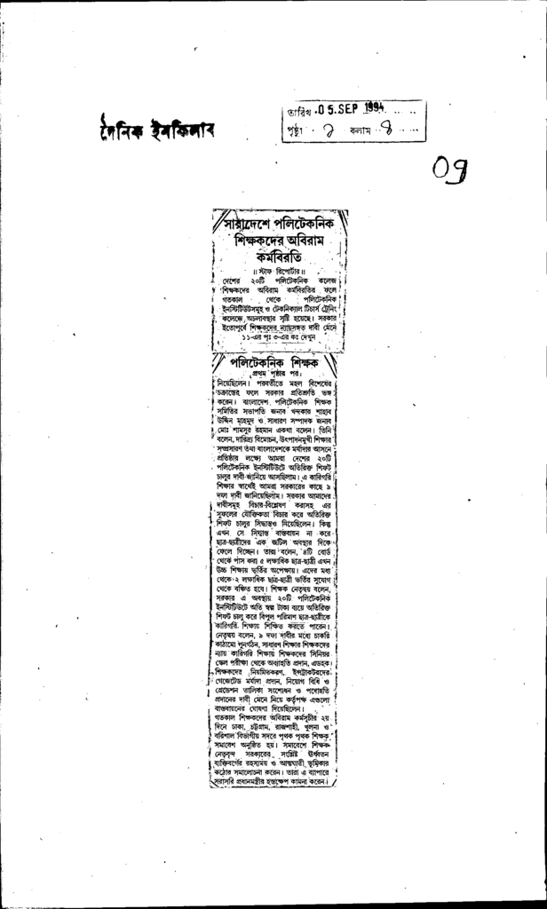 সারাদেশে পলিটেকনিক শিক্ষকদের অবিরাম কর্মবিরতি Published on Newspaper দৈনিক ইনকিলাব Category Technical and Vocational Education Download
