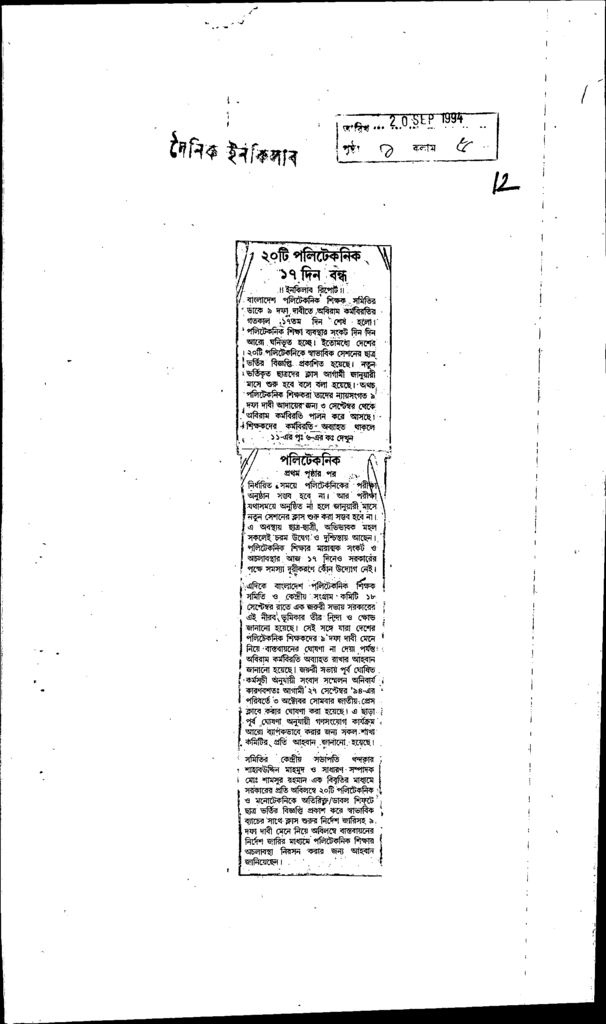 ২০টি পলিটেকনিক ১৭দিন বন্ধ Published on Newspaper দৈনিক ইনকিলাব Category Technical and Vocational Education Download