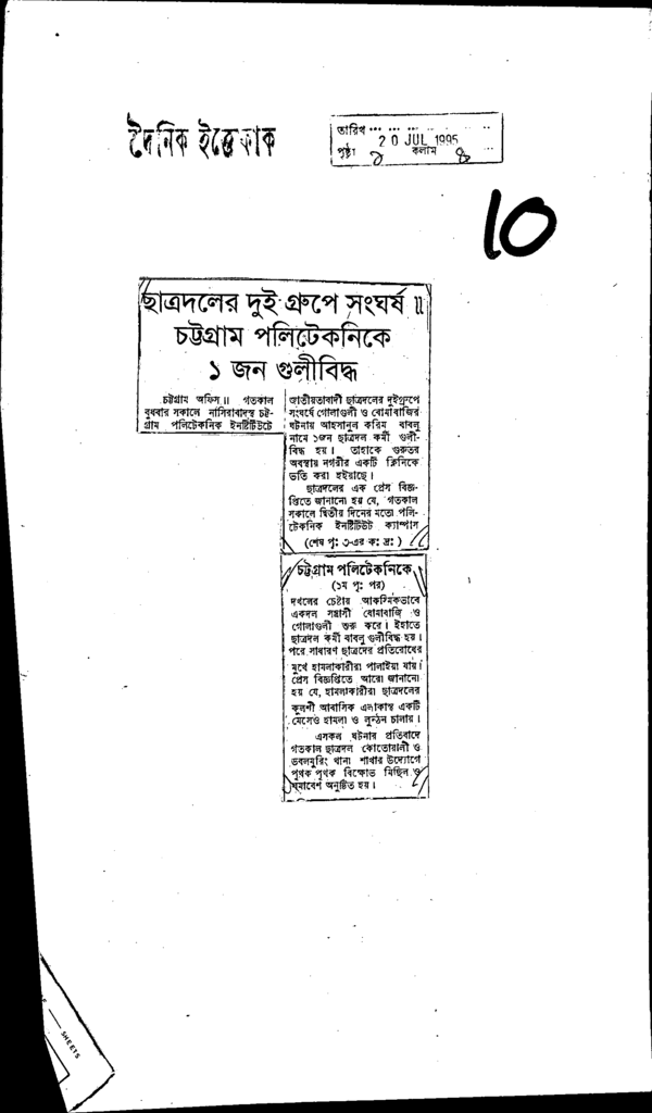 ছাত্রদলের দুইগ্রুপে সংঘর্ষ চট্রগ্রাম পলিটেকনিকে ১জন গুলীবিদ্ধ
