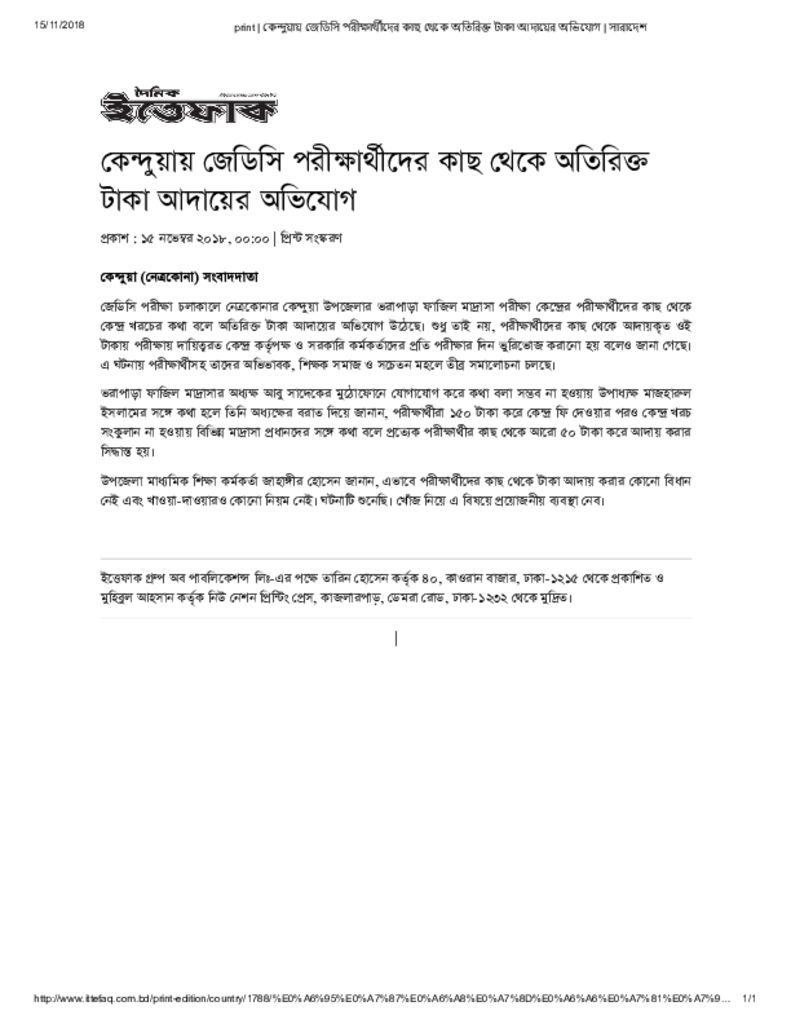 print _ কেন্দুয়ায় জেডিসি পরীক্ষার্থীদের কাছ থেকে অতিরিক্ত টাকা আদায়ের অভিযোগ _ সারাদেশ Published on Newspaper দৈনিক ইত্তেফাক Category Public Examination Public Examination JSC Download