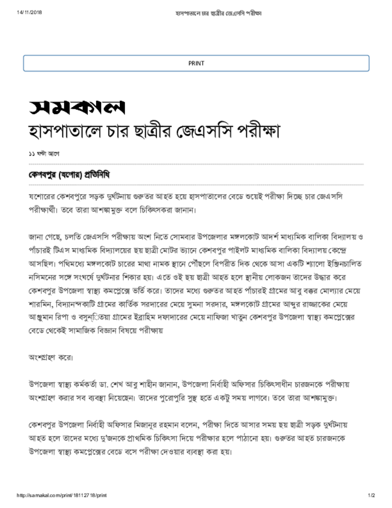 হাসপাতালে চার ছাত্রীর জেএসসি পরীক্ষা Published on Newspaper দৈনিক সমকাল Category Public Examination Public Examination JSC Download