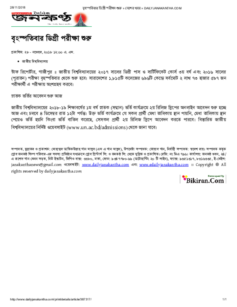 বৃহস্পতিবার ডিগ্রী পরীক্ষা শুরু » দেশের খবর » DAILYJANAKANTHA.COM Published on Newspaper দৈনিক জনকণ্ঠ Category Public Examination Public Examination Honors(Pass) Download