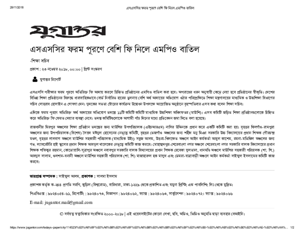 এসএসসির ফরম পূরণে বেশি ফি নিলে এমপিও বাতিল