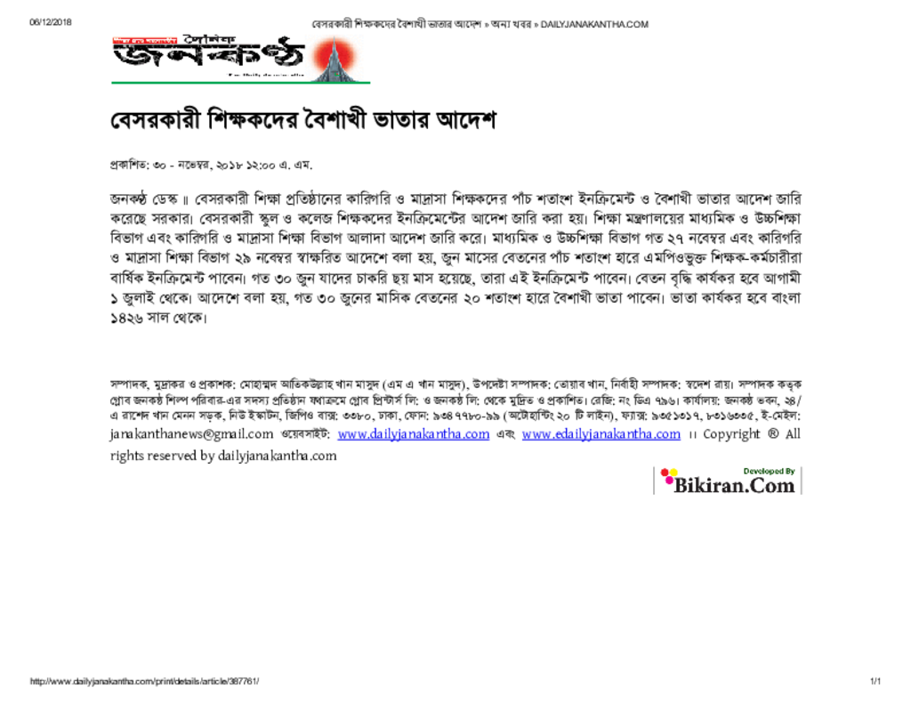 বেসরকারী শিক্ষকদের বৈশাখী ভাতার আদেশ » অন্য খবর » DAILYJANAKANTHA Published on Newspaper দৈনিক জনকণ্ঠ Category Educational Ministry / Departments Division Secondary and Higher Education Education Ministry / Division / Directorate Download