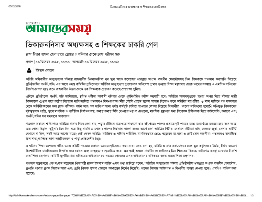ভিকারুননিসার অধ্যক্ষসহ ৩ শিক্ষকের চাকরি গেল Published on Newspaper দৈনিক আমাদের সময় Category Educational Ministry / Departments Division Secondary and Higher Education Education Ministry / Division / Directorate Download