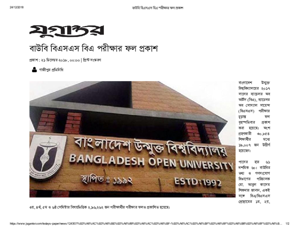 বাউবি বিএসএস বিএ পরীক্ষার ফল প্রকাশ Published on Newspaper দৈনিক যুগান্তর Category Public Examination Public Examination Higher Education Download