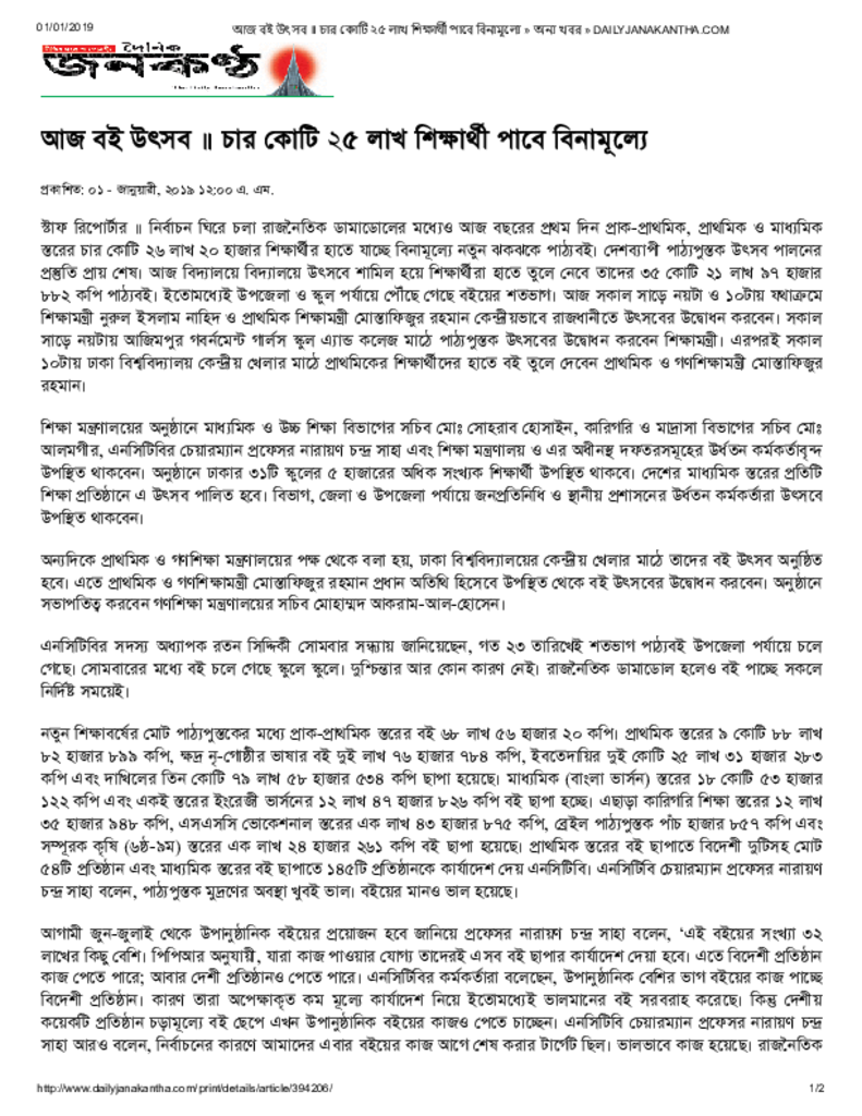 আজ বই উৎসব ॥ চার কোটি ২৫ লাখ শিক্ষার্থী পাবে বিনামূল্যে » অন্য খবর » DAILYJANAKANTHA.COM