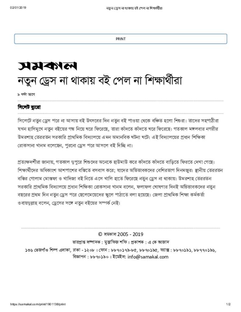 নতুন ড্রেস না থাকায় বই পেল না শিক্ষার্থীরা Published on Newspaper দৈনিক সমকাল Category Book Day Download