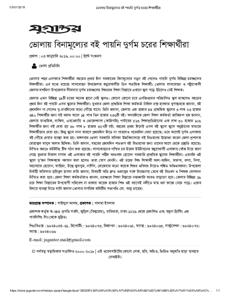 ভোলায় বিনামূল্যের বই পায়নি দুর্গম চরের শিক্ষার্থীরা Published on Newspaper দৈনিক যুগান্তর Category Book Day Download