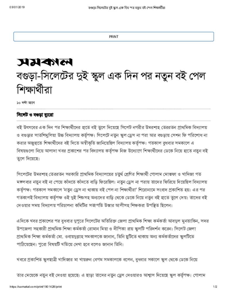 বগুড়া-সিলেটের দুই স্কুল এক দিন পর নতুন বই পেল শিক্ষার্থীরা Published on Newspaper দৈনিক সমকাল Category Book Day Download Statistics 1 download