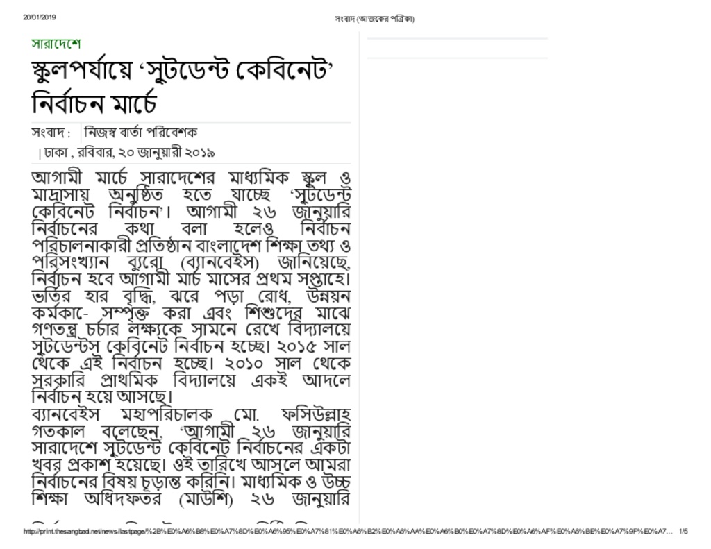 স্কুলপর্যায়ে ‘স্টুডেন্ট কেবিনেট’ নির্বাচন মার্চে Published on Newspaper দৈনিক সংবাদ Category Educational Ministry / Departments directorate BANBEIS Education Ministry / Division / Directorate Download