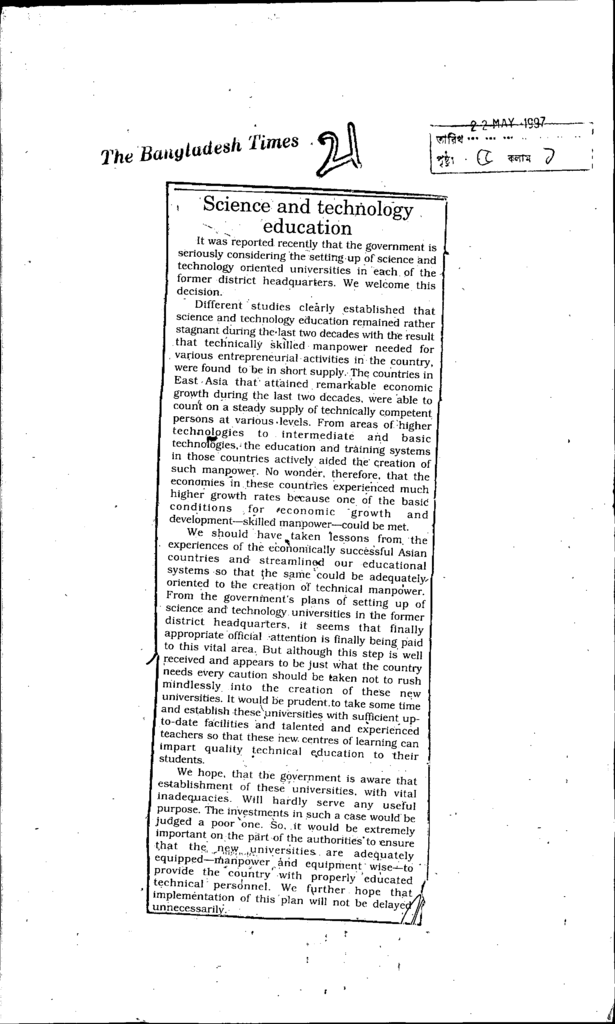 Science and technology education Published on Newspaper The Bangladesh Times Category Science Education Download