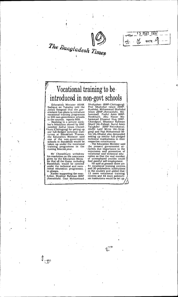 Vocational training to be introduced in non -govt schools Published on Newspaper The Bangladesh Times Category Personal Opinion / Discussion / Commentary Download