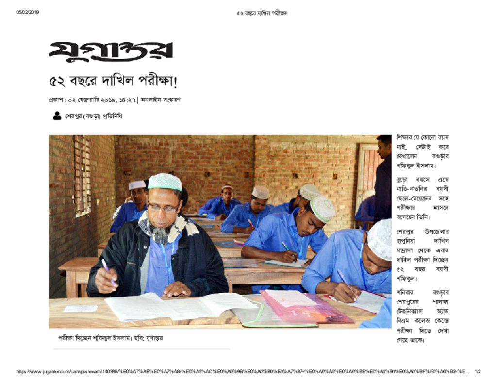 ৫২ বছরে দাখিল পরীক্ষা! Published on Newspaper দৈনিক যুগান্তর Category Public Examination Public Examination Others Download